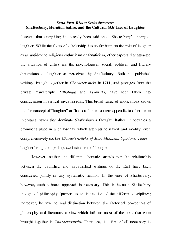 Pdf Ridentem Dicere Verum Quid Vetat Shaftesbury Horatian Satire And The Cultural Ab Uses Of Laughter Patrick Muller Academia Edu